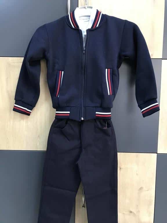 Erkek öğrencilerimiz için lacivert pantolon, üzerine beyaz polo yaka tişört ve lacivert polar hırka,