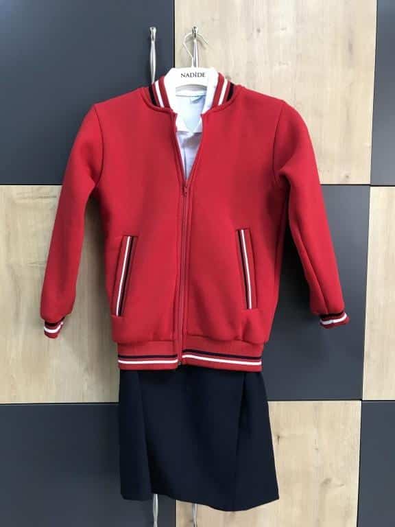 Kız öğrencilerimiz için lacivert etek, lacivert pantolon yada lacivert şort etek, üzerine beyaz polo yaka tişört ve kırmızı polar hırka,